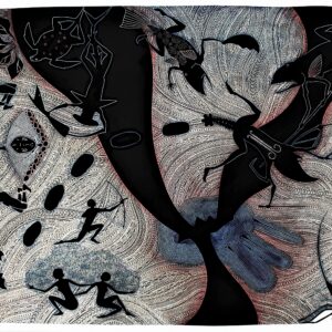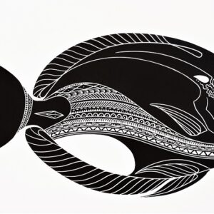Daniel comes from a strong family of Aboriginal and Eastern Torres Strait Islander heritage. The traditional stories re-told in Daniel’s work are passed down to him by family members and respected elders from Erub (Darnley) Island, home to his mother’s family. Daniel draws inspiration from the previous generation of Torres Strait Islander printmakers, combining an extraordinary talent in carving ‘warr’, a form of symbolic patterning, to create a rich moving tapestry that serves as a backdrop for the characters in his stories. Daniel has been the recipient of several prestigious national print awards, and his work is held in major national and international collections.
